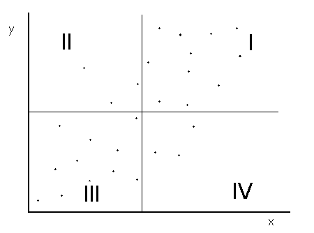 For points in quadrant I, both of the x and y values are larger than their respective means.